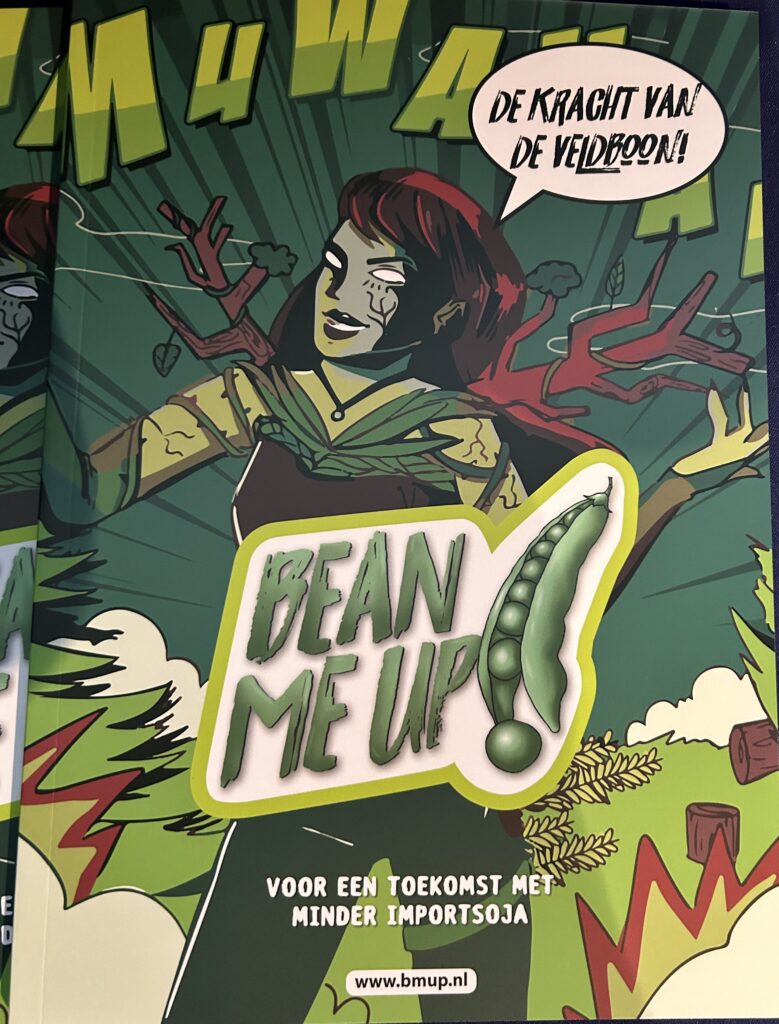 Stripboek Bean me up! gelanceerd Op maandag 11 december 2023, is vol trots het eerste exemplaar van ons stripboek overhandigd aan Bart Combee, voorzitter van het College van Bestuur van Hogeschool Inholland. Op maandag 11 december 2023, is vol trots het eerste exemplaar van ons stripboek overhandigd aan Bart Combee, voorzitter van het College van Bestuur van Hogeschool Inholland. Samen met de professionele redactie, de mooie vormgeving, een diversiteit aan humoristische strips van verschillende striptekenaars, sprekende infographics en de bezielende inspiratie van lector “Food for Happy Ageing” Feike van der Leij, is een prachtig eindresultaat opgeleverd: het Bean me up! stripboek over de toepassingsmogelijkheden van de veldboon in humane voeding. In het stripboek wordt de lezer bij de hand genomen met informatieve strips, een infographic en een interview over het maatschappelijk belang van het consumeren van meer plantaardige eiwitten, maar ook het verduurzamen van die eiwitstroom door het vervangen van importsoja door lokaal geteelde veldbonen. Vervolgens komen in het stripboek dezelfde thema’s aan bod als op de website: teelt, wetenschap en producent. Strips die het verhaal beeldend maken worden afgewisseld met infographics en interviews, waarbij ook enkele studenten aan het woord zijn die gewerkt hebben aan het ontwikkelen van diverse voedingsproducten gemaakt van, of verrijkt met fracties van, de veldboon. Hiermee is een mooi, tastbaar en vooral duurzaam resultaat opgeleverd van het EFRO-project Bean me up! Het doel van het stripboek is tweeledig: jongeren enthousiasmeren voor een toekomst in Agri, Food en/of Life Sciences en tegelijkertijd het bewustzijn vergroten over de lokaal geteelde veldboon als geweldig alternatief voor importsoja. In het project Bean me up! zijn grote stappen gezet in een regionale korte keten van de teelt van de veldboon als eiwitrijk gewas tot en met innovatieve toepassingen die het geschikt maken voor humane consumptie. Dit alles is mogelijk gemaakt door een hecht samenwerkingsverband tussen FICA-deelnemers, kennisinstellingen en MKB uit de regio. Bean in products bean you up? Wij supporten iedereen in de korte keten die net zo in de veldboon gelooft als wij. Wil je meedoen? Dat kan! Wij stellen dan een studieteam voor je samen. Onder supervisie van professionals it de hele keten geven wij samen, jouw product een boost met die magische Faba boon. Hogeschool Inholland Vonk Amsterdam Green Campus Biorefinery Solutions (BRS) ontwikkelt specifieke, milde bioraffinage technieken om eiwitten, vezels, suikers en andere hoogwaardige ingrediënten uit plantaardig (rest)materiaal te winnen. BRS heeft hierin ervaring opgedaan door samenwerking met voedselproducenten, wat heeft geleid tot de ontwikkeling van breed toepasbare, functionele ingrediënten Relevante artikelen